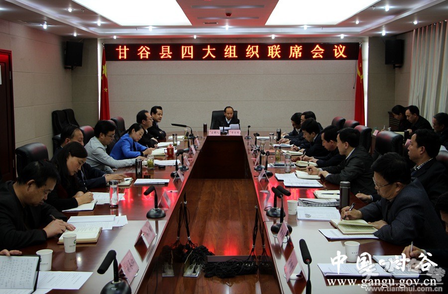 3月7日,甘谷縣委書記賈忠慧主持召開縣四大組織聯(lián)席會議?h人大常委會主任令建民,縣委副書記、縣長申君明,縣政協(xié)主席馬驥等縣四大組織在家領(lǐng)導(dǎo)參加會議。
