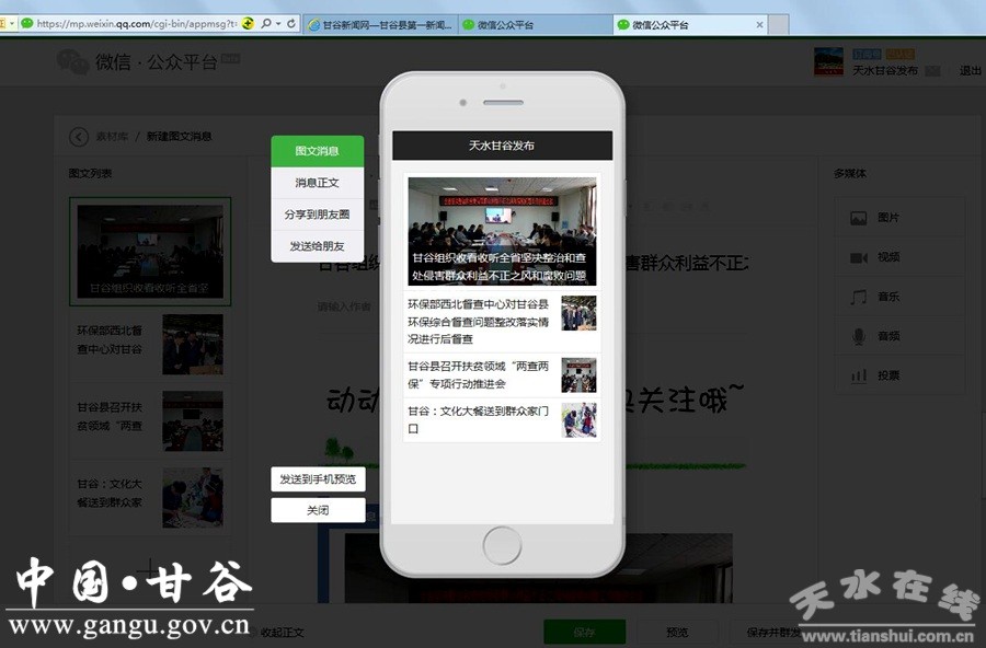 4月28日,由甘谷縣委宣傳部創(chuàng)辦的“天水甘谷發(fā)布”政務(wù)微信公眾平臺正式上線運(yùn)行。甘谷縣委常委、宣傳部長張慶元點(diǎn)擊啟動。