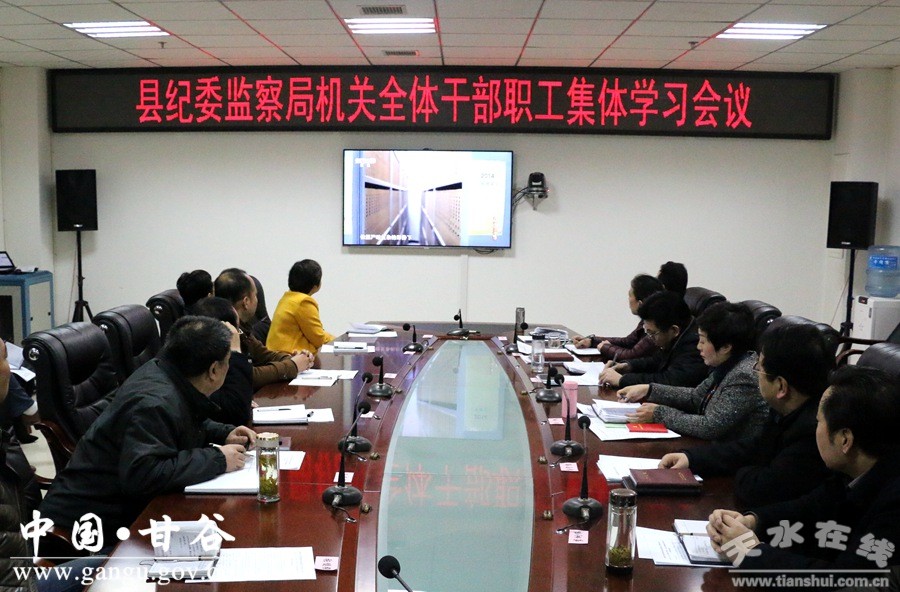 2月4日,甘谷縣紀(jì)委召開專題會議,集體觀看電視專題片《打鐵還需自身硬》、學(xué)習(xí)《中國共產(chǎn)黨紀(jì)律檢查機(jī)關(guān)監(jiān)督執(zhí)紀(jì)工作規(guī)則(試行)》?h委常委、紀(jì)委書記謝輝出席會議并講話;縣紀(jì)委全體干部職工參加會議。
