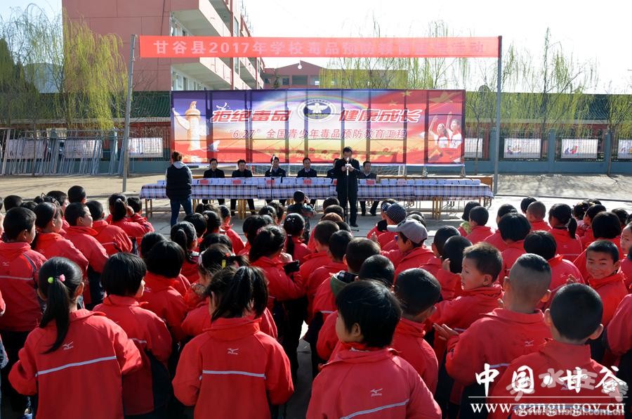 為進一步加強禁毒宣傳教育,增強青少年禁毒防毒意識,3月30日,甘谷縣在慈光九年制學校開展青少年毒品預防教育“6.27”工程進校園活動?h委常委、政法委書記馮全敬出席活動;縣公安局、教體局負責人及慈光學校全體師生參加活動。