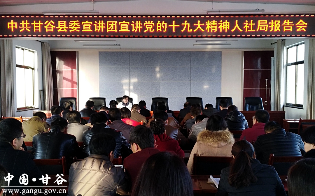 11月20日,甘谷縣委宣講團(tuán)成員、縣委黨校講師王燕青深入縣人社局宣講黨的十九大精神。局黨委成員、全體黨員干部共計(jì)80多人聆聽了宣講報(bào)告。