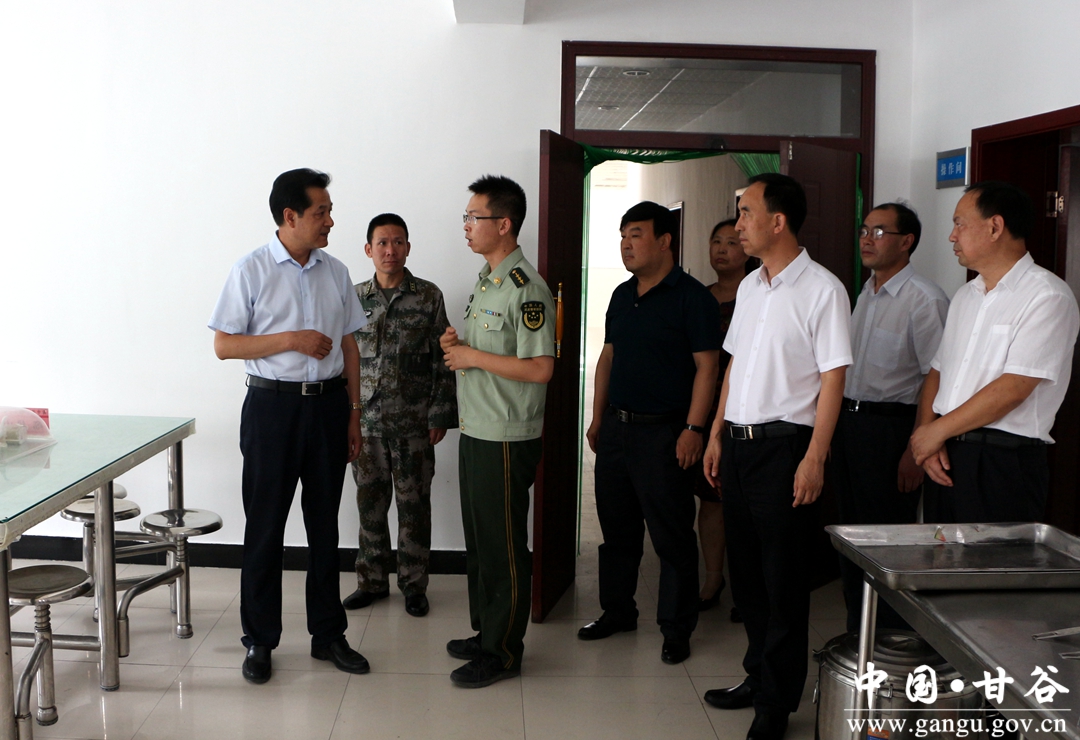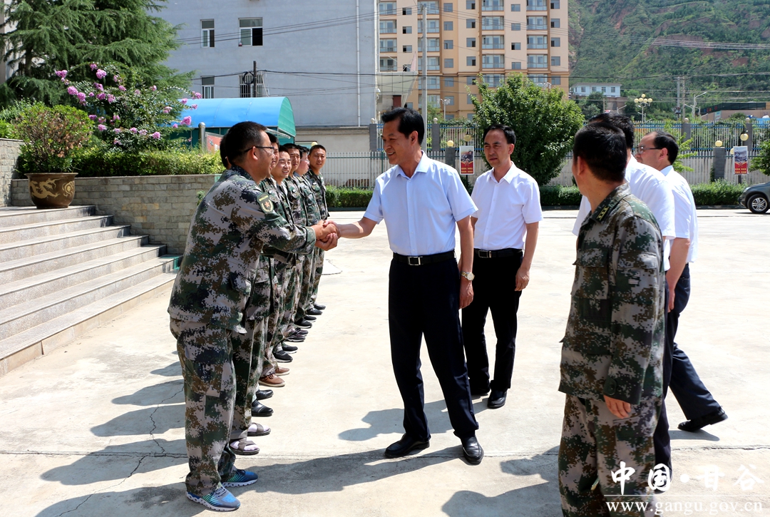 在“八一”建軍節(jié)即將來臨之際,7月30日,甘谷縣委書記申君明來到縣人武部、武警縣中隊(duì)、消防大隊(duì)等地,慰問駐縣軍警部隊(duì)官兵。縣委常委、政法委書記馮全敬,縣委常委、副縣長王志高一同慰問。