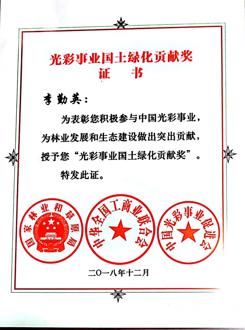 “光彩事業(yè)國土綠化貢獻(xiàn)獎”是中華全國工商業(yè)聯(lián)合會、國家林業(yè)和草原局、中國光彩事業(yè)促進(jìn)會為大力宣傳和表彰民營企業(yè)在國土綠化行動中的創(chuàng)業(yè)精神和先進(jìn)典型,進(jìn)一步激發(fā)社會各界力量參與林業(yè)建設(shè)而設(shè)立的,主要對在光彩國土綠化事業(yè)中作出突出貢獻(xiàn)的民營企業(yè)家給予表彰。本次該獎項通過各地推薦、公示和第七屆“光彩事業(yè)國土綠化貢獻(xiàn)獎”領(lǐng)導(dǎo)小組嚴(yán)格評審,在全國范圍內(nèi)表彰優(yōu)秀民營企業(yè)家40名,甘谷勤英生態(tài)綠化有限公司總經(jīng)理李勤英榜上有名,成為我省唯一獲此殊榮的民營企業(yè)家。