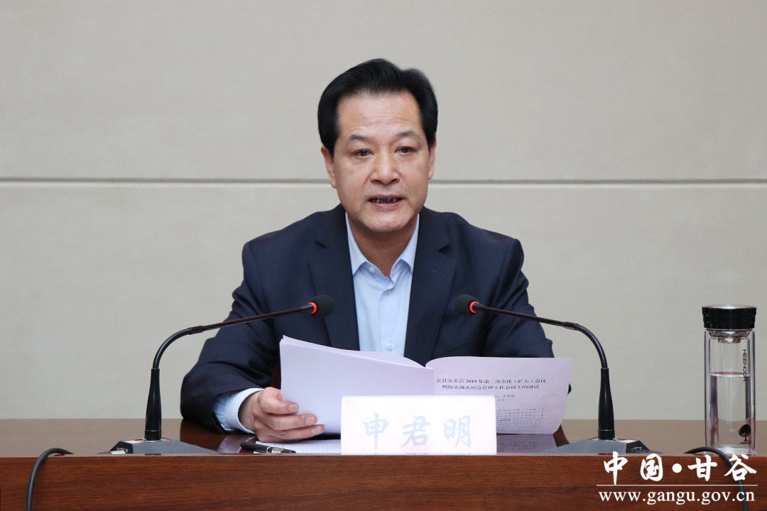 4月3日,甘谷縣召開安委會(huì)2019年第二次全體(擴(kuò)大)會(huì)議暨防災(zāi)減災(zāi)應(yīng)急管理工作會(huì)議?h委書記申君明出席會(huì)議并講話;縣委常委、常務(wù)副縣長(zhǎng)孟曉龍安排部署2019年全縣安全生產(chǎn)和應(yīng)急管理工作;縣委常委、縣政法委書記馮全敬主持會(huì)議;縣人大常委會(huì)副主任劉永仁,副縣長(zhǎng)、縣公安局局長(zhǎng)許維正,縣政協(xié)副主席田小龍,縣人武部部長(zhǎng)齊小軍出席會(huì)議;縣直相關(guān)部門及各鄉(xiāng)鎮(zhèn)負(fù)責(zé)人參加會(huì)議。