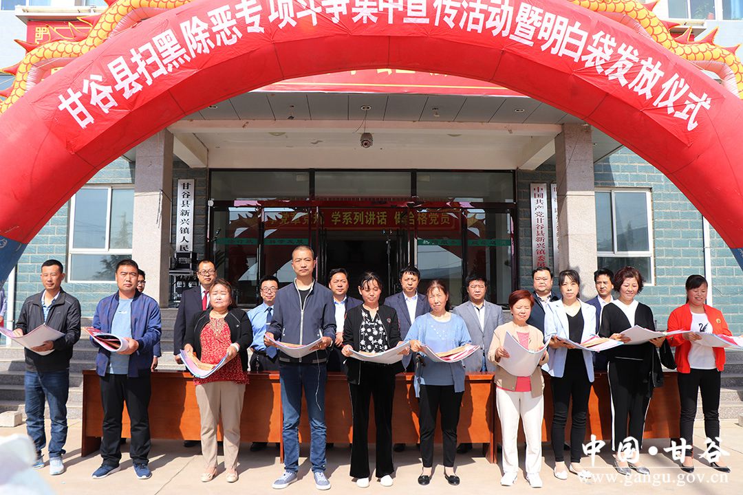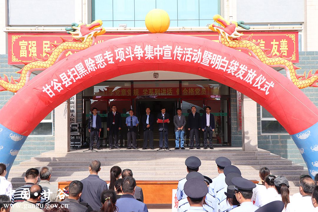 5月23日,甘谷縣掃黑除惡專項斗爭第二場集中宣傳活動暨“明白袋”發(fā)放儀式在新興鎮(zhèn)政府舉行,縣委常委、政法委書記、縣掃黑除惡專項斗爭領導小組副組長馬福勝出席活動并講話?h委組織部、縣委宣傳部、縣委政法委、縣法院、檢察院、公安局、司法局、掃黑辦、融媒體中心負責人,新興鎮(zhèn)鎮(zhèn)村兩級干部、甘谷二中、新興中學、渭陽學區(qū)、新興學區(qū)部分師生和附近群眾參加宣傳活動。