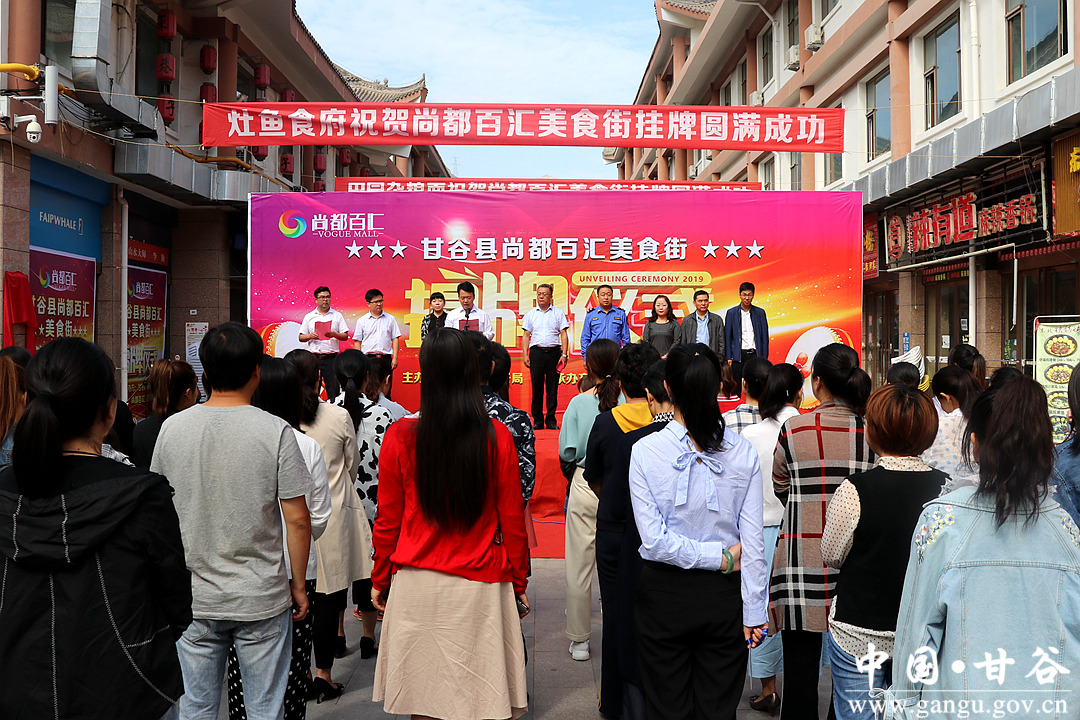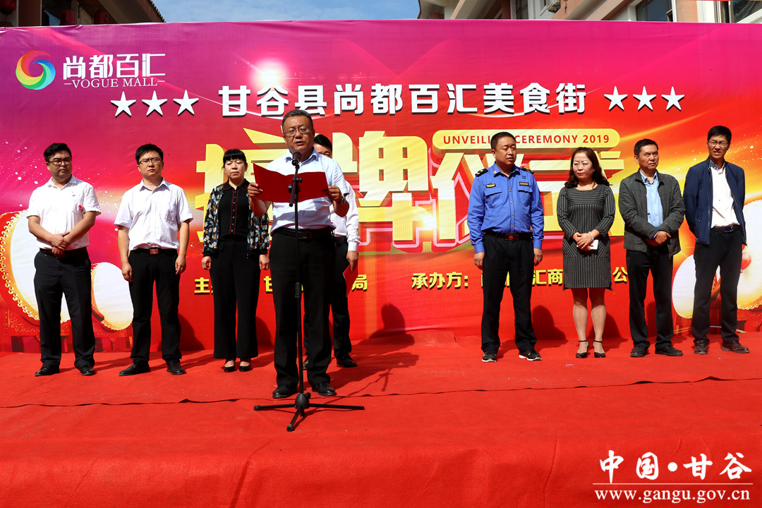 8月27日,甘谷縣首個(gè)“政府引導(dǎo),企業(yè)為主,市場(chǎng)運(yùn)作”的美食街在尚都百匯步行街掛牌成立?h委常委、統(tǒng)戰(zhàn)部長(zhǎng)王剛出席揭牌儀式;縣商務(wù)局、市場(chǎng)監(jiān)管局、住建局、文旅局、執(zhí)法局、大像山鎮(zhèn)等鄉(xiāng)鎮(zhèn)部門負(fù)責(zé)人參加揭牌儀式。