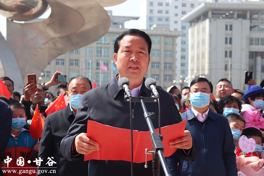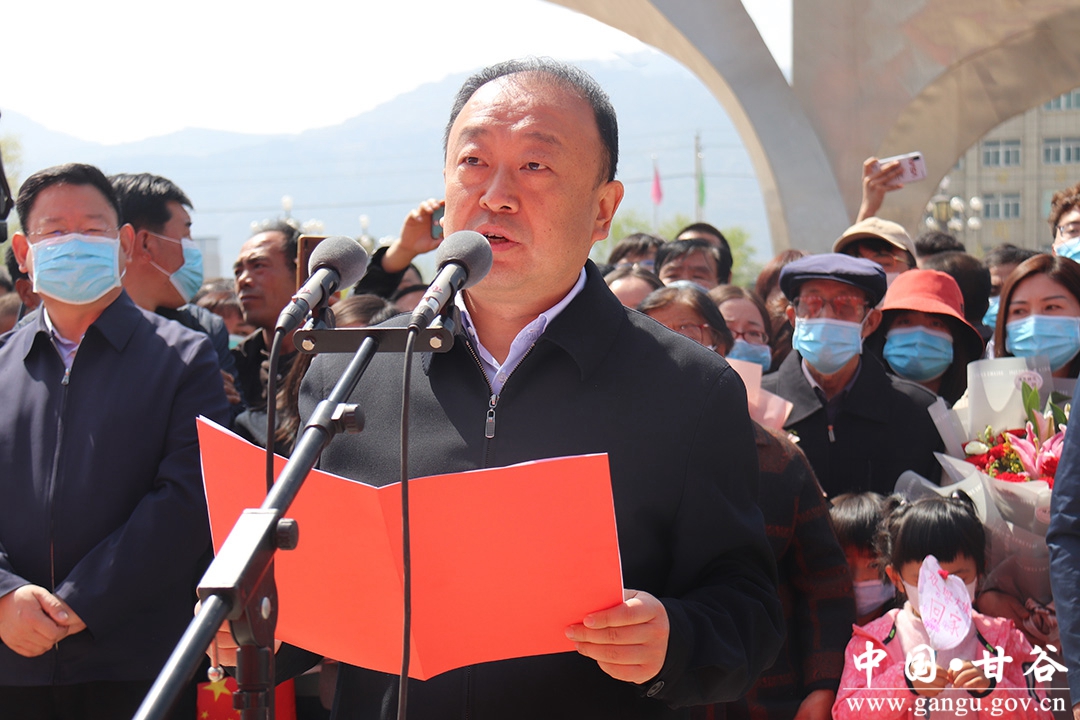 吳健在講話中代表縣四大組織和64萬(wàn)全縣人民,向4位英雄平安回家表示熱烈的歡迎,對(duì)他們近50天的英勇奮戰(zhàn)表示衷心的感謝,并向默默支持、辛勞付出的醫(yī)護(hù)人員家屬表示崇高的敬意!他說,面對(duì)突如其來的新冠肺炎疫情,你們4位作為甘肅援鄂醫(yī)療隊(duì)成員,代表甘谷積極響應(yīng)中央和省市委的號(hào)召,主動(dòng)請(qǐng)纓、逆行出征,舍小家、顧大家,遠(yuǎn)離需要照顧的父母,遠(yuǎn)離需要關(guān)心的孩子,帶著甘谷人民的囑托,帶著使命、帶著責(zé)任、帶著感情,義無(wú)反顧沖向武漢抗疫第一線,與武漢人民并肩作戰(zhàn),與新冠病毒正面交鋒。當(dāng)前,全國(guó)疫情防控形勢(shì)持續(xù)向好,武漢抗疫阻擊戰(zhàn)取得決定性勝利,今天你們圓滿完成任務(wù),平安回來,我們感到無(wú)比自豪和驕傲。你們的付出,充分展現(xiàn)了醫(yī)者仁心的崇高精神,充分詮釋了明理重義、吃苦耐勞、樂于奉獻(xiàn)的甘谷精神,你們是最美逆行者,是當(dāng)之無(wú)愧的“最美天水人”,更是新時(shí)代的最美抗疫英雄!