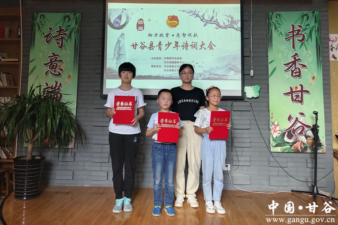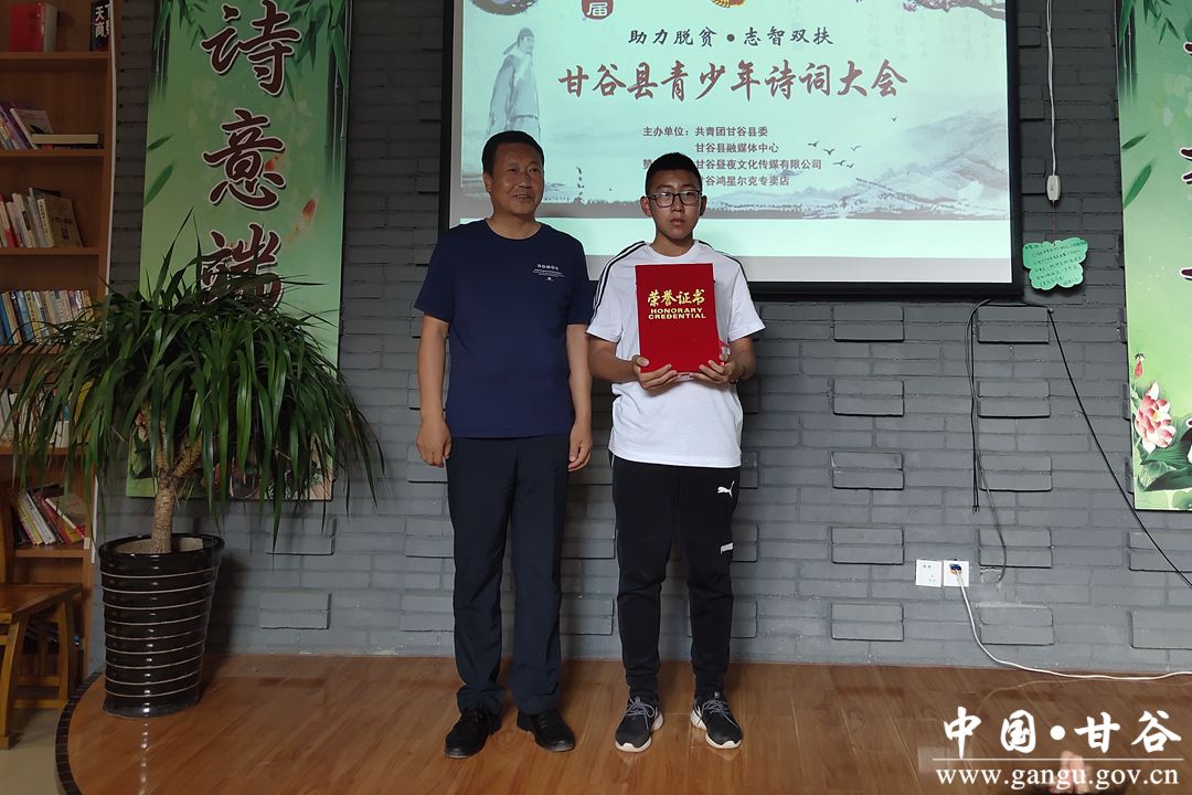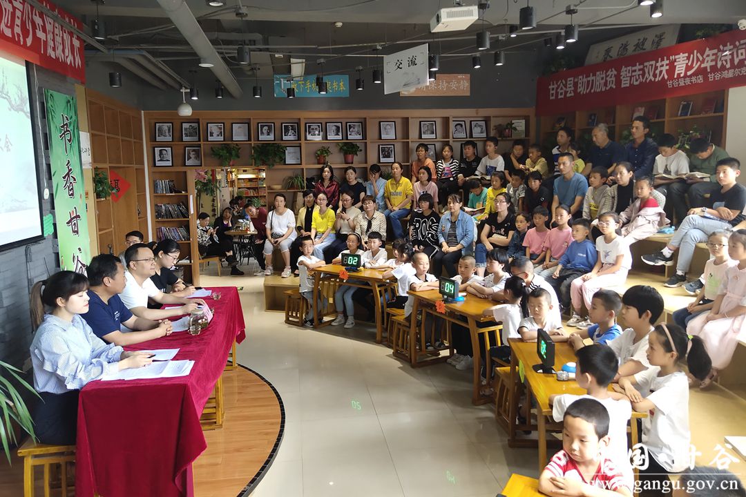 為了進(jìn)一步弘揚(yáng)中華優(yōu)秀傳統(tǒng)文化,促進(jìn)青少年健康成長(zhǎng),為助力脫貧攻堅(jiān)、決勝全面建成小康貢獻(xiàn)力量,8月20日,甘谷縣“助力脫貧·志智雙扶”青少年詩(shī)詞大會(huì)在晝夜書店舉行。團(tuán)縣委、縣融媒體中心負(fù)責(zé)同志、評(píng)委嘉賓、贊助商代表、參賽同學(xué)及學(xué)生家長(zhǎng)代表共計(jì)60余人參加活動(dòng)。