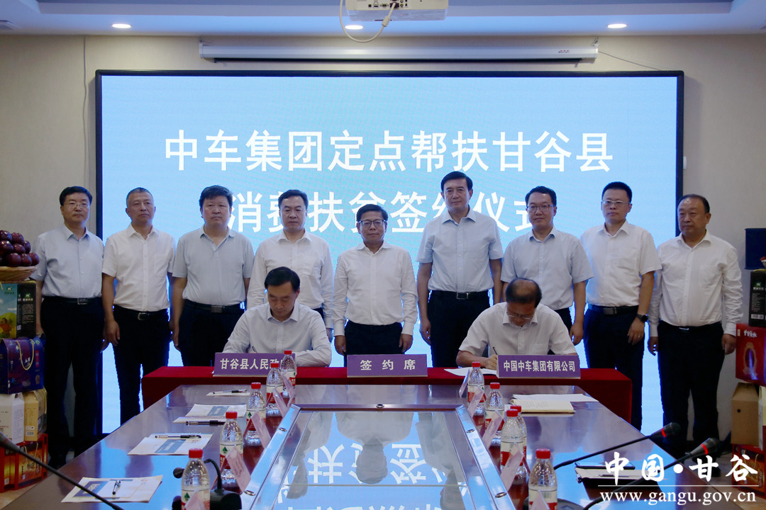在定點(diǎn)幫扶簽約儀式上,與會人員共同觀看了《傾情幫扶譜華章——中車集團(tuán)定點(diǎn)幫扶甘谷縣工作紀(jì)錄片》,隨后中車集團(tuán)與甘谷縣政府簽訂了扶貧消費(fèi)協(xié)議。