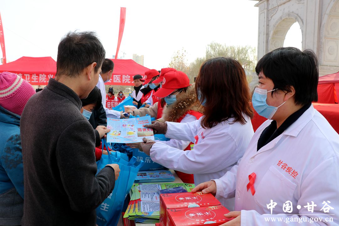 11月30日,在第33個(gè)“世界艾滋病日”來(lái)臨之際,甘谷縣組織開(kāi)展了“攜手防疫抗艾 共擔(dān)健康責(zé)任”主題宣傳活動(dòng)。縣委常委、宣傳部部長(zhǎng)王亞梅,縣人大常委會(huì)副主任陳旭,副縣長(zhǎng)牛武軍,縣政協(xié)副主席蔣文參加宣傳活動(dòng)。