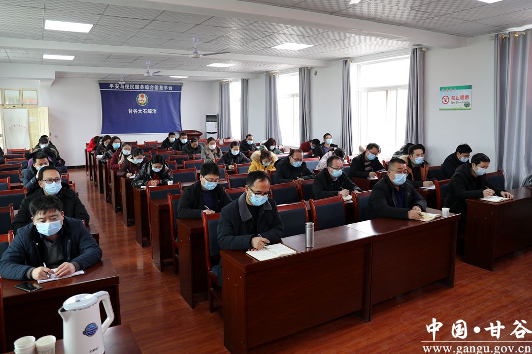 馬驥強(qiáng)調(diào),全鎮(zhèn)領(lǐng)導(dǎo)干部要把習(xí)近平總書(shū)記對(duì)甘肅重要講話精神作為全部工作的統(tǒng)攬和主線,把學(xué)習(xí)貫徹十九屆五中全會(huì)精神作為當(dāng)前的重要政治任務(wù),深入學(xué)習(xí)領(lǐng)會(huì)黨的基本理論、基本路線、基本方略,堅(jiān)決貫徹落實(shí)中央和省市部署要求,不折不扣貫徹執(zhí)行縣委、縣政府決策部署,高度負(fù)責(zé)地抓好各項(xiàng)工作任務(wù)的落實(shí),廣泛凝聚推動(dòng)經(jīng)濟(jì)社會(huì)發(fā)展的強(qiáng)大合力。大石鎮(zhèn)黨委要按照縣委統(tǒng)一安排部署,以黨委為龍頭,以黨員干部為重點(diǎn),精心組織學(xué)習(xí)宣傳、研討交流等活動(dòng),切實(shí)把全鎮(zhèn)廣大干部群眾的思想和行動(dòng)統(tǒng)一到全會(huì)精神上來(lái),把各方面的智慧和力量凝聚到落實(shí)全會(huì)確定的各項(xiàng)目標(biāo)任務(wù)上來(lái),奮力譜寫(xiě)加快我縣“十四五”經(jīng)濟(jì)社會(huì)發(fā)展,建設(shè)幸福美好新甘谷的大石篇章。