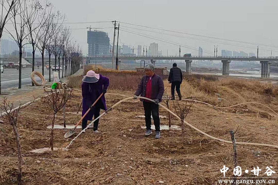 在甘谷縣渭北十里生態(tài)長(zhǎng)廊區(qū)域內(nèi),記者看到,工人們正在清理雜草、更換新苗并及時(shí)為苗木補(bǔ)水;同時(shí)工人們還對(duì)區(qū)域內(nèi)每株苗木進(jìn)行了修剪及屬兔病害防治。