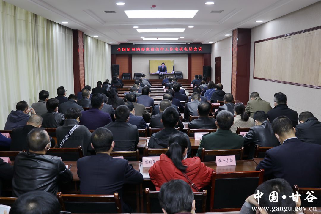 副縣長牛武軍及縣直有關(guān)部門負(fù)責(zé)人在甘谷分會(huì)場收聽收看會(huì)議。