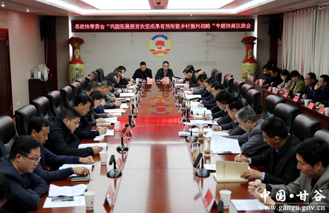3月31日,縣政協(xié)主席馬驥主持召開甘谷縣政協(xié)常委會“鞏固拓展脫貧攻堅成果有效銜接鄉(xiāng)村振興戰(zhàn)略”專題協(xié)商議政會?h委副書記舒時光出席會議并講話;縣委常委、統(tǒng)戰(zhàn)部部長、縣政協(xié)黨組副書記王見學(xué),縣政協(xié)副主席董德福、田小龍、馬清平、蔣文出席會議;縣政協(xié)全體常委,各委辦負責(zé)人及相關(guān)部門負責(zé)人、部分縣政協(xié)委員參加會議。