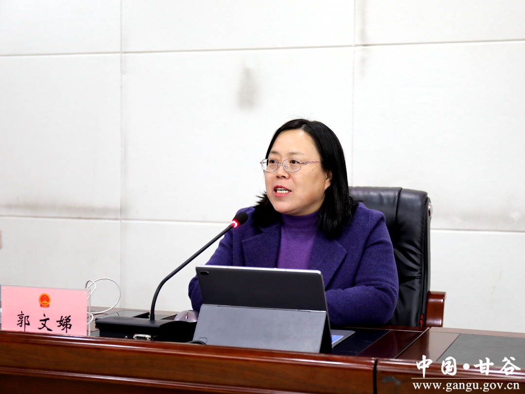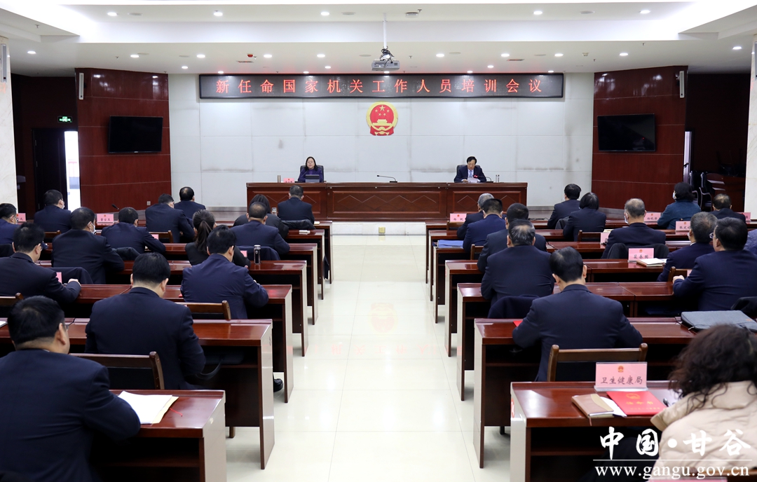 1月14日,甘谷縣人大常委會邀請市委黨校法學(xué)教授郭文娣為縣十八屆人大常委會第一次會議新任命國家機(jī)關(guān)工作人員作專題講座?h人大常委會主任楊帆主持培訓(xùn)會?h人大常委會副主任陳旭、薛希武、王新民、楊曉濤、董寶玉及縣十八屆人大常委會組成人員與新任命國家機(jī)關(guān)工作人員一同參加培訓(xùn)。