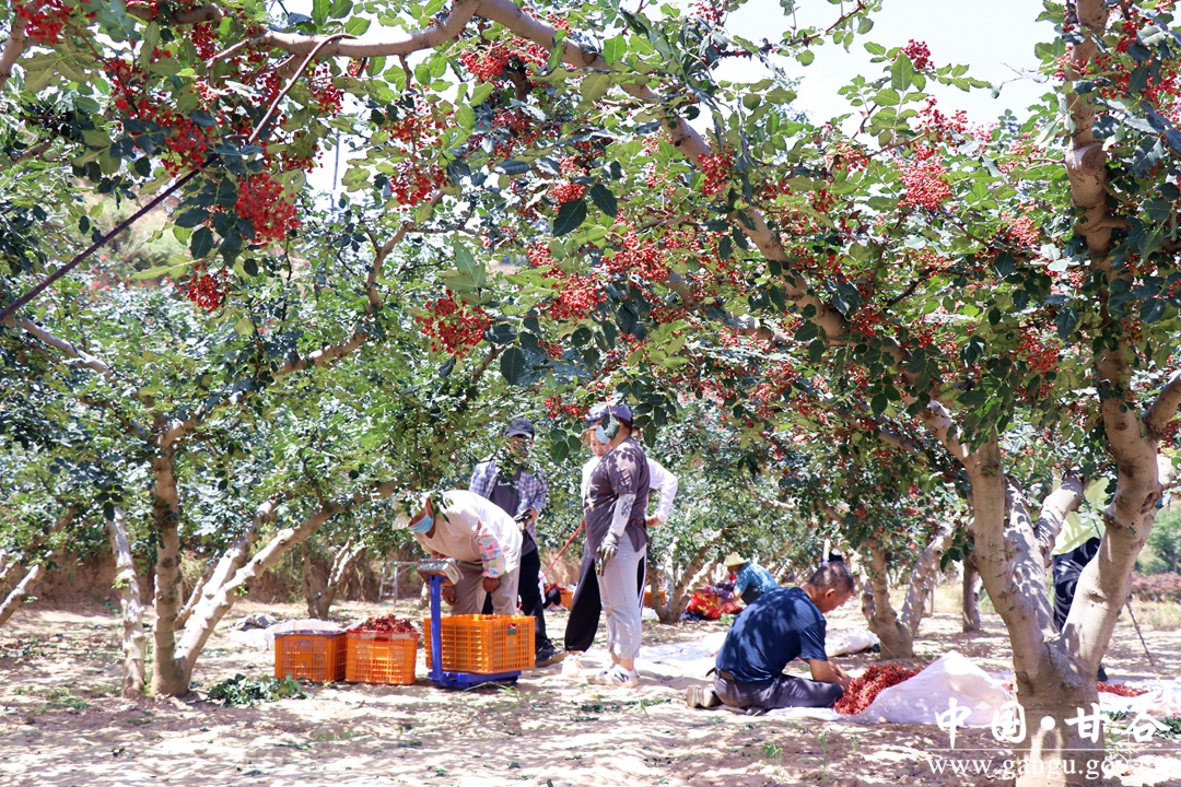 花椒是白家灣鄉(xiāng)支柱產(chǎn)業(yè)之一,也是“椒區(qū)”農(nóng)戶增收致富的主要來源。在白家灣鄉(xiāng)安家灣等村的花椒基地,鮮紅油亮飽滿的“大紅袍”花椒掛滿枝頭,微風(fēng)拂過椒香撲鼻,田間隨處可見椒農(nóng)采椒的豐收景象。此時(shí)“雇主”趙瑞軍正帶著工人在一片紅綠的椒園中采摘花椒。