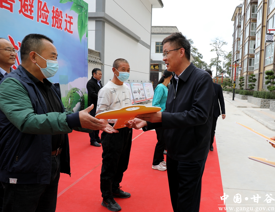 入住儀式上,孫忠平為喜遷新居的群眾交付新房鑰匙。六峰鎮(zhèn)匯報(bào)介紹了全鎮(zhèn)生態(tài)及地質(zhì)災(zāi)害避險(xiǎn)搬遷工作整體情況。
