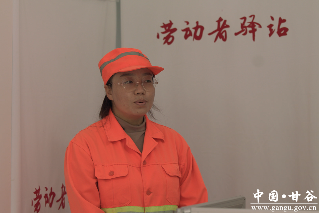 勞動(dòng)者代表王亞瓊說,我是一名環(huán)衛(wèi)工人,以前我們工作累了,只能在路邊找個(gè)地兒坐一下,想喝口水都沒地方,現(xiàn)在有了這個(gè)驛站,到了冬天我們就能取取暖,喝杯水,熱熱飯,休息休息,真的太方便了。