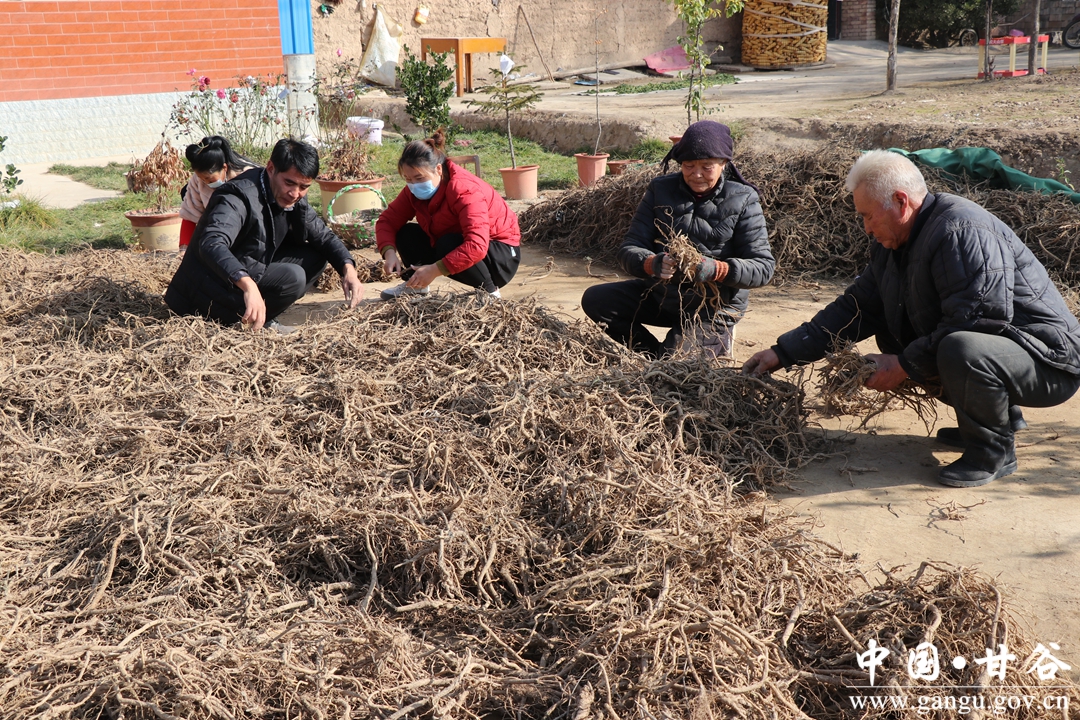 而在甘谷縣爍爍種植農民專業(yè)合作社,負責人賈萬同正在指導20多名工人修剪、篩分一捆捆晾曬的黃芪,在工人初加工后,分成不同等次的黃芪,再經過一段時間的晾曬便可進行銷售。