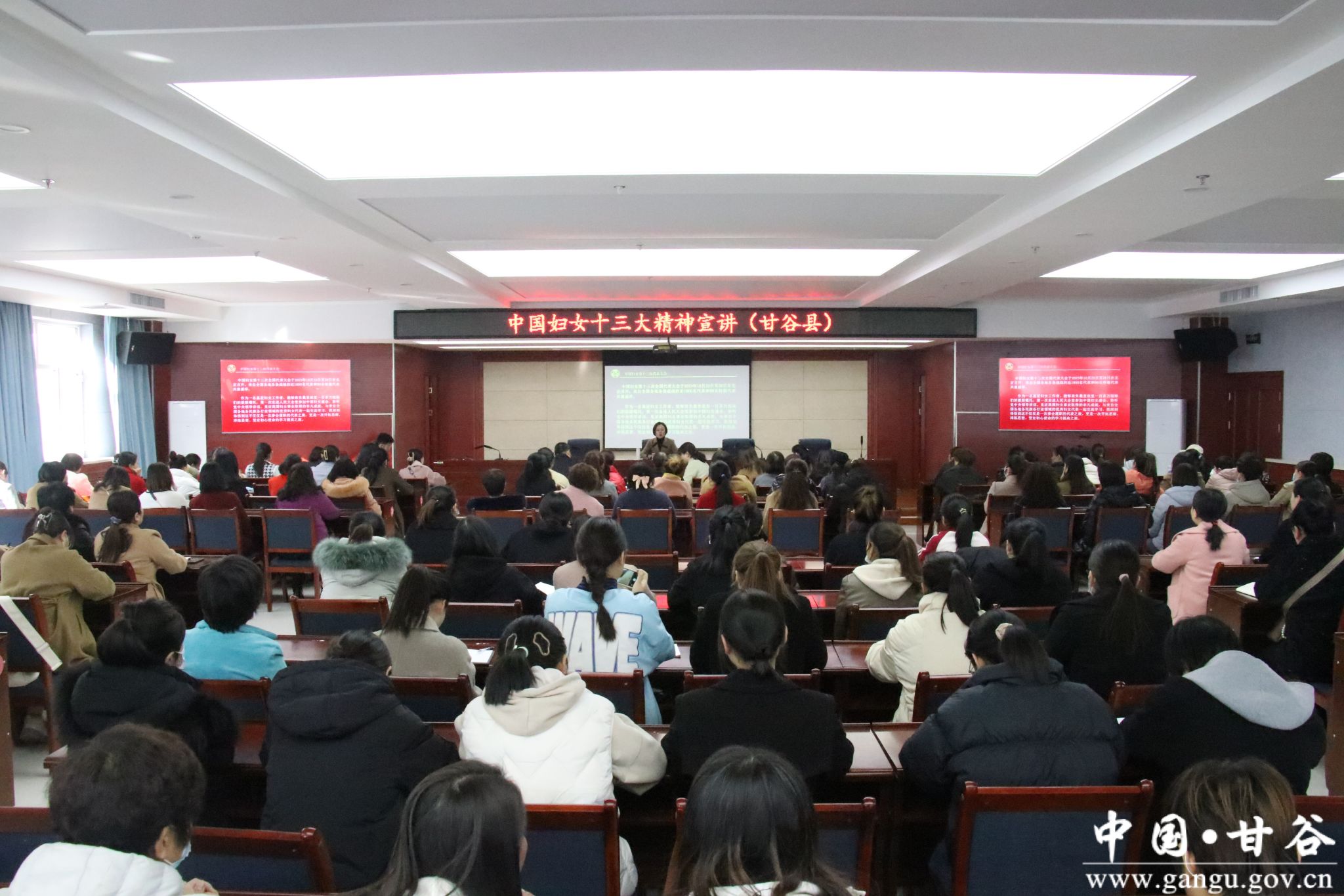 為深入學(xué)習(xí)宣傳貫徹中國婦女第十三次全國代表大會精神,推動學(xué)習(xí)宣傳貫徹大會精神走進(jìn)千家萬戶、走進(jìn)廣大婦女群眾,切實把大會精神轉(zhuǎn)化為推動婦女兒童事業(yè)高質(zhì)量發(fā)展的實際行動,11月16日,甘谷縣召開中國婦女十三大精神宣講大會,中國婦女十三大代表、天水市婦聯(lián)黨組書記、主席肖江作專題宣講?h委副書記許祖熙主持大會,各鄉(xiāng)鎮(zhèn)、村(社區(qū))婦聯(lián)主席、副主席、執(zhí)委、婦女干部、致富帶頭人代表、巾幗志愿者代表、各縣直單位婦委會主任等共計200余人參加活動。