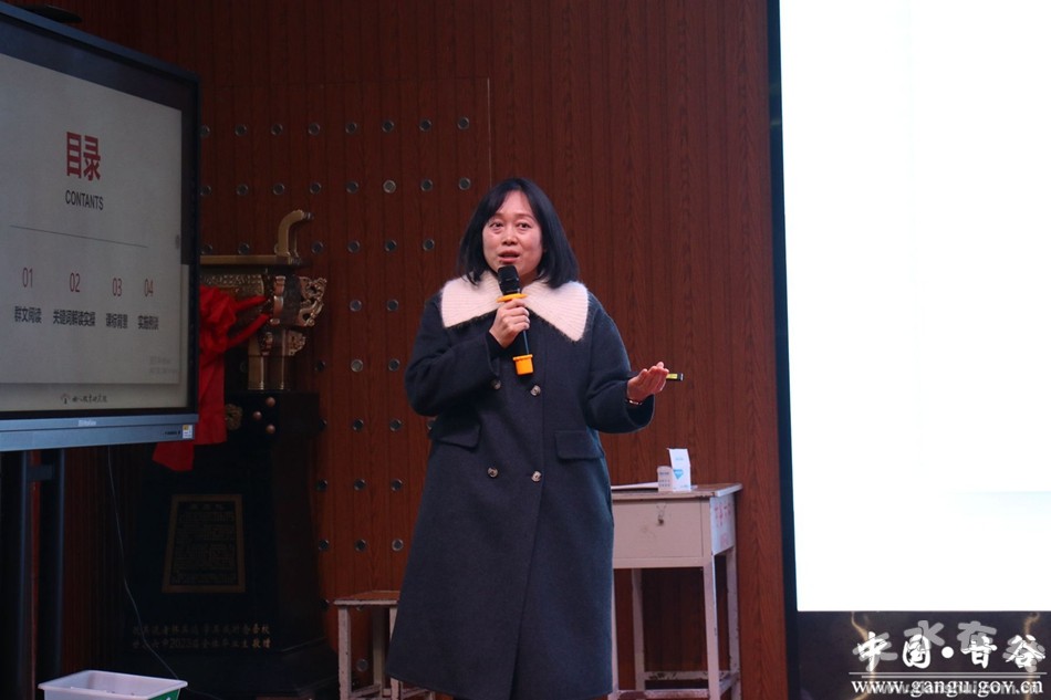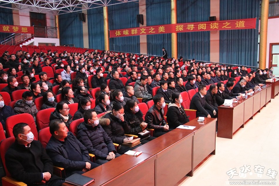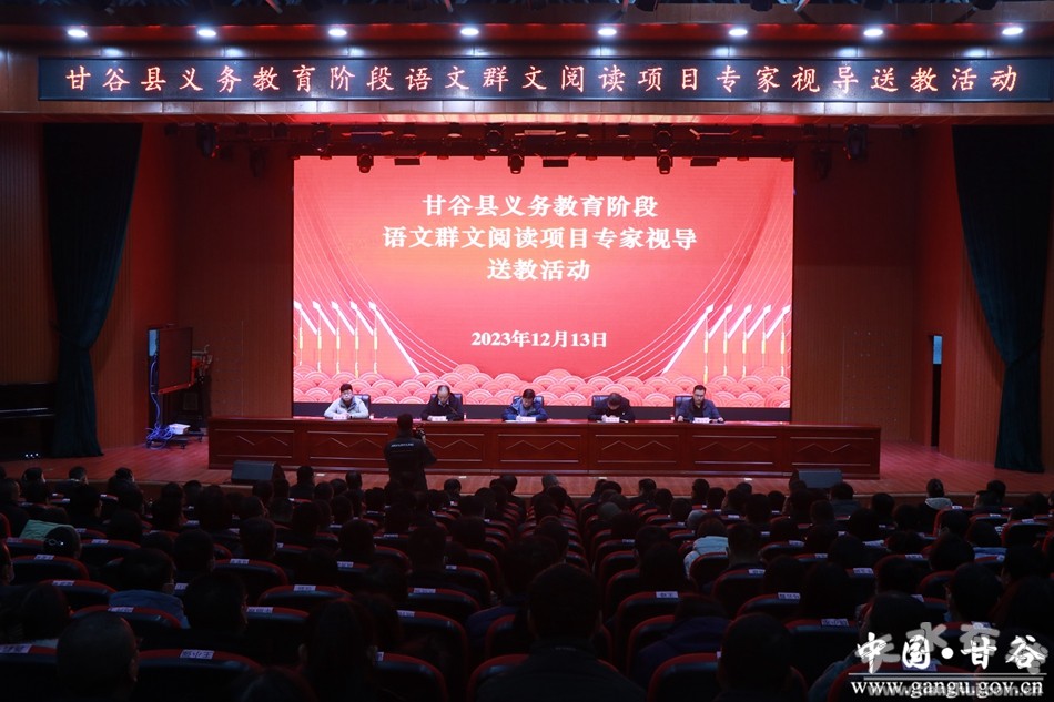 新甘谷訊【記者 李宛郁】12月13日,甘谷縣義務(wù)教育階段語(yǔ)文群文閱讀項(xiàng)目專(zhuān)家視導(dǎo)送教活動(dòng)在甘谷六中舉行。天水市教育科學(xué)研究所副所長(zhǎng)王昌昌,甘谷縣人民政府教育督導(dǎo)室專(zhuān)職督學(xué)程芳軍,甘谷縣人民政府教育督導(dǎo)室主任鄭琦,重慶樹(shù)人教育研究院甘肅事業(yè)部副主任周術(shù)旗出席開(kāi)幕式并致辭。活動(dòng)由甘谷縣教育教學(xué)研究室主任陳金衛(wèi)主持。甘谷縣中小學(xué)語(yǔ)文學(xué)科骨干教師共計(jì)400余人參加活動(dòng)。