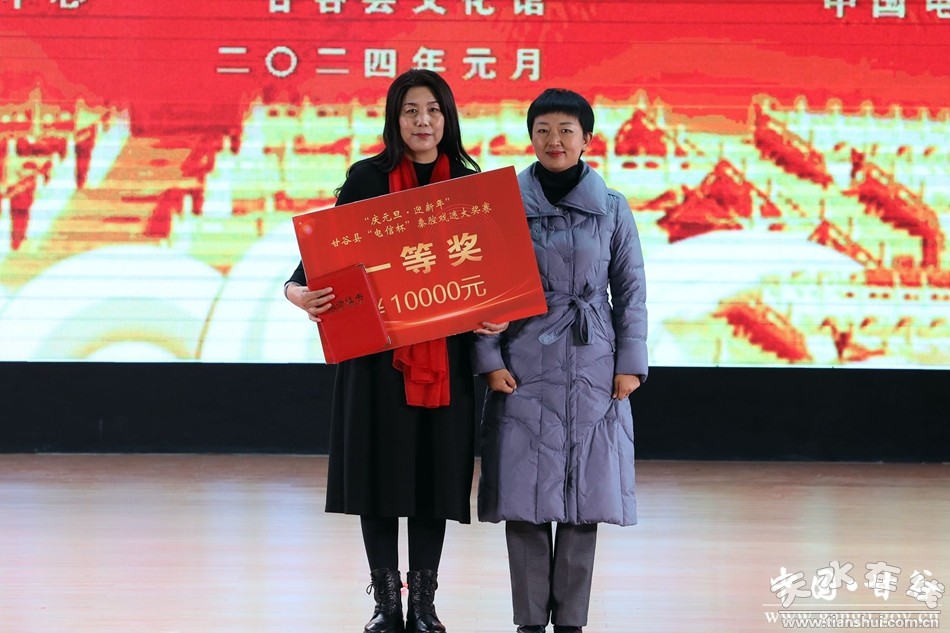 新甘谷訊【記者謝映波】1月4日,甘谷縣舉辦“電信杯”秦腔戲迷大獎(jiǎng)賽頒獎(jiǎng)晚會(huì)。縣委常委、宣傳部部長(zhǎng)范慧出席并致辭?h人大常委會(huì)副主任楊曉濤、副縣長(zhǎng)曲遠(yuǎn)風(fēng)、縣政協(xié)副主席李文定為獲獎(jiǎng)選手頒獎(jiǎng)。