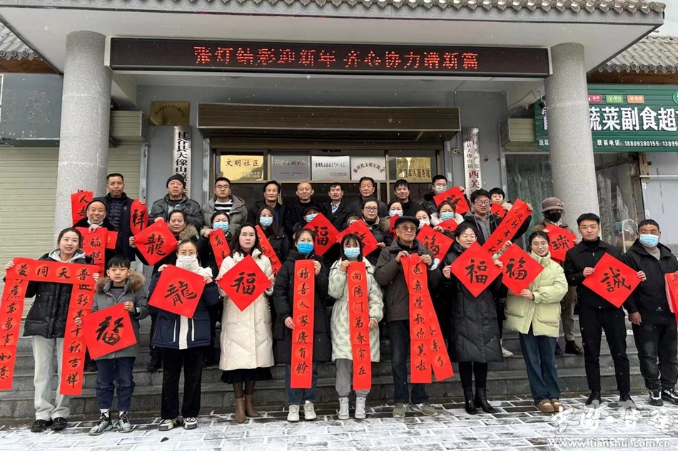 新甘谷訊“龍騰瑞氣照萬(wàn)戶(hù),鳳舞祥云映千家”。時(shí)值龍年新春佳節(jié)到來(lái)之際,甘谷縣社會(huì)組織胸懷父老鄉(xiāng)親,心系困難群眾,主動(dòng)承擔(dān)社會(huì)責(zé)任,深入新興鎮(zhèn)康家灘村片區(qū)、大像山鎮(zhèn)西關(guān)社區(qū)開(kāi)展了迎新春送文化送溫暖活動(dòng)。全縣16家社會(huì)組織負(fù)責(zé)人和書(shū)畫(huà)愛(ài)好者,以及愛(ài)心志愿者參加了活動(dòng)。