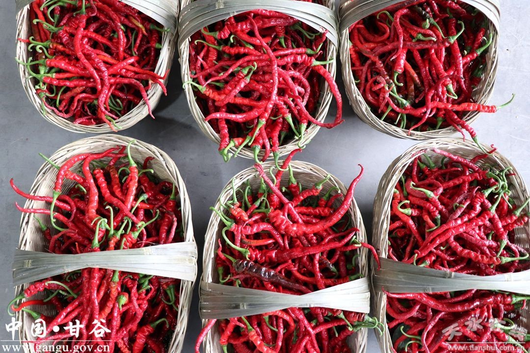 甘谷縣農作物一般兩年三熟(甘肅大部分地區(qū)一年一熟),主要以冬小麥為主,在6月份收了小麥之后會種些秋季作物,比如白菜、卷心菜、胡蘿卜、大豆、谷子等,在10月份收了秋季作物又種冬小麥。辣椒是一年一熟,三月份播種,十月份收獲。我們那大多土壤是沙土,很適合辣椒生長,長出來的辣椒皮薄肉厚,是線椒七寸紅。2011年7月6日,原國家質檢總局批準對“甘谷辣椒”實施地理標志產(chǎn)品保護。