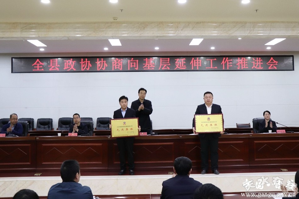 會議傳達學(xué)習(xí)了省政協(xié)完善委員聯(lián)系界別群眾制度機制工作推進會議精神和省政協(xié)出臺的《開展“千站千室萬名委員”聯(lián)系服務(wù)界別群眾行動方案(試行)》精神;通報了全縣政協(xié)協(xié)商向基層延伸工作情況;宣讀了《政協(xié)天水市委員會關(guān)于表彰政協(xié)協(xié)商向基層延伸工作先進集體和個人的決定》,并對優(yōu)秀集體和個人進行了表彰;部分鄉(xiāng)鎮(zhèn)委員工作站和協(xié)商議事室負責(zé)人了交流發(fā)言;并向首批創(chuàng)建的16個委員工作室進行了集中授牌。