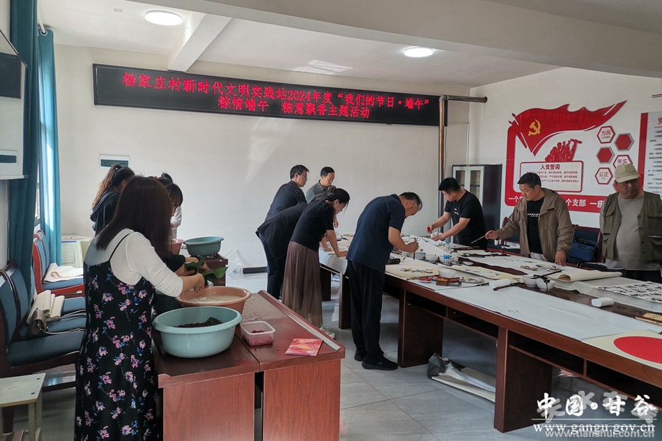 楊家莊村新時(shí)代文明實(shí)踐站聯(lián)合縣文聯(lián)、縣科協(xié)等單位開展包粽子、寫書法等活動(dòng)。村民們積極參與,歡聲笑語(yǔ)中,一雙雙巧手熟練地將糯米和餡料包裹成一個(gè)個(gè)美味的粽子。同時(shí),各位作者揮毫潑墨,書寫出一幅幅與端午節(jié)相關(guān)的優(yōu)美書法作品,展示了傳統(tǒng)文化的魅力;顒(dòng)不僅弘揚(yáng)了端午節(jié)傳統(tǒng)文化,營(yíng)造了和諧友愛的鄉(xiāng)村氛圍,更豐富了村民的精神文化生活,進(jìn)一步增強(qiáng)了村民之間的凝聚力和歸屬感。