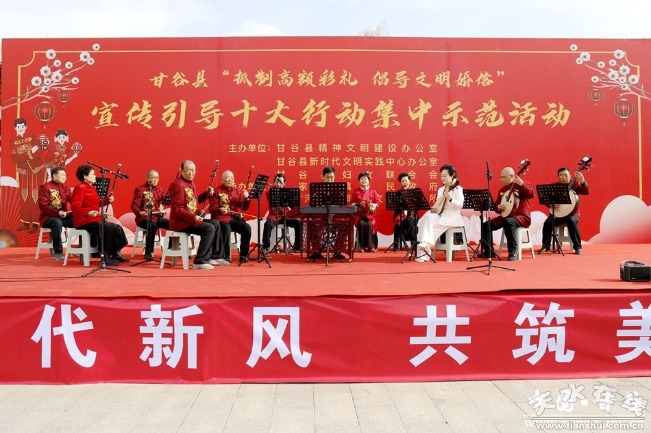 楊亞君在講話中指出,近年來,甘谷縣把移風(fēng)易俗作為農(nóng)村精神文明建設(shè)的重要內(nèi)容,廣泛開展理論宣講、政策宣傳、科學(xué)普及、文化惠民等實踐活動,著力培育文明鄉(xiāng)風(fēng)、良好家風(fēng)、淳樸民風(fēng)。各鄉(xiāng)鎮(zhèn)要以本次活動為契機(jī),提高站位,壓實責(zé)任,聚焦重要時間節(jié)點,發(fā)揮好各新時代文明實踐所、站職能,發(fā)揮好紅白理事會等群眾自治組織的作用,創(chuàng)新活動載體,開展宣傳引導(dǎo),樹立“不比彩禮比人品、不講排場講文明”的新風(fēng)正氣?h直相關(guān)部門要加強(qiáng)協(xié)同配合,發(fā)揮職能優(yōu)勢,圍繞活動主題,統(tǒng)籌用好各類宣傳資源,推動形成彩禮從低、流程從簡、婚俗從新的文明風(fēng)尚。希望廣大干部群眾積極參與到活動中來,從我做起,從現(xiàn)在做起,以實際行動抵制高額彩禮、倡導(dǎo)文明婚俗,共同營造良好的社會風(fēng)氣。