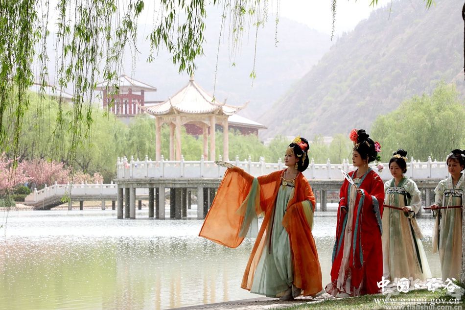 活動現(xiàn)場,來自舞蹈學(xué)校的學(xué)生們身著絢麗多彩的古裝,他們的舞姿輕盈優(yōu)美,配合著公園內(nèi)的亭臺樓閣、綠樹繁花,宛如一幅靈動的山水畫卷,將甘谷的歷史文化與自然風(fēng)光完美融合,讓觀眾們大飽眼福。