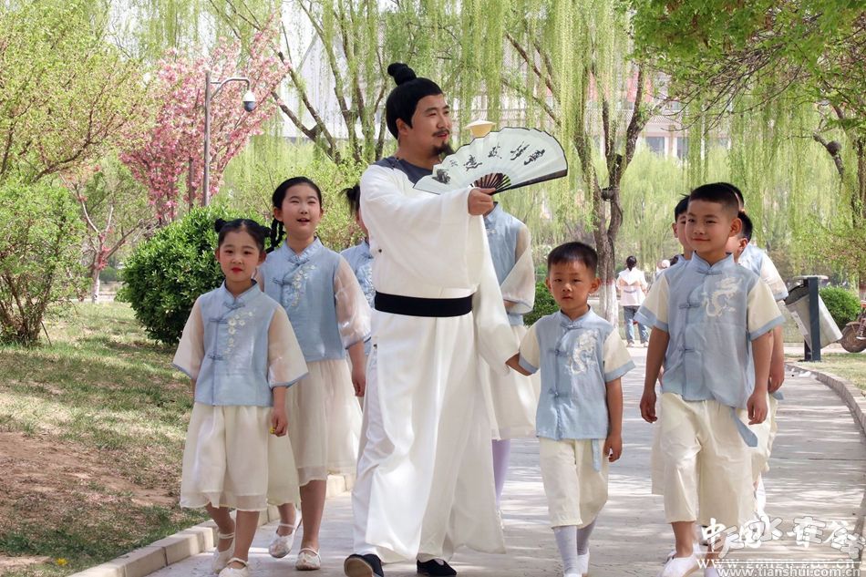 看,“李白”一襲長袍,手持折扇,瀟灑地帶著學(xué)生們在園內(nèi)漫步,一邊走一邊吟誦著千古名句,讓人仿佛看到了詩仙當年的豪邁與灑脫。