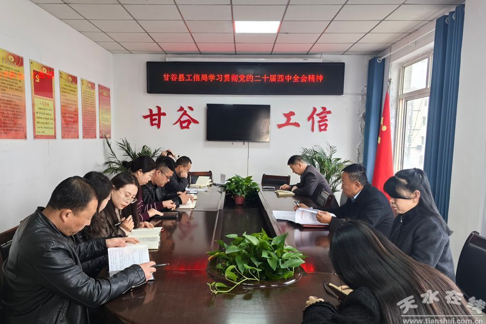 新甘谷訊【通訊員朱!拷,甘谷縣工業(yè)和信息化局召開專題會(huì)議,學(xué)習(xí)貫徹黨的二十屆四中全會(huì)精神,黨組書記主持會(huì)議并講話。