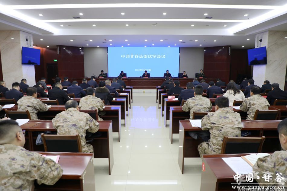 新甘谷訊【記者黃鑫】11月26日,中共甘谷縣委召開議軍會(huì)議。會(huì)議深入學(xué)習(xí)貫徹習(xí)近平強(qiáng)軍思想和黨的二十屆四中全會(huì)精神,全面貫徹落實(shí)省委、市委議軍會(huì)議精神,回顧總結(jié)今年以來的工作,安排部署下一階段重點(diǎn)任務(wù),動(dòng)員引導(dǎo)全縣各級(jí)各部門進(jìn)一步強(qiáng)化使命擔(dān)當(dāng),提升動(dòng)員能力,深化雙擁共建,不斷開創(chuàng)國防動(dòng)員和后備力量建設(shè)新局面。