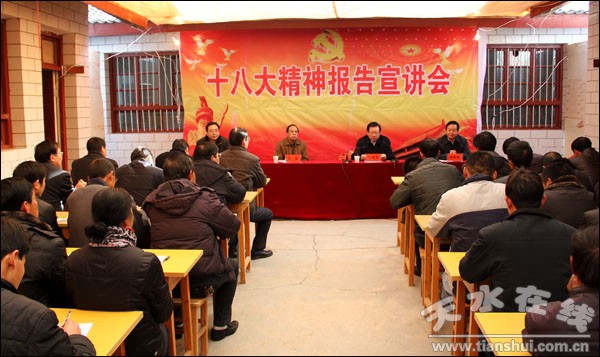 “鄉(xiāng)親們,黨的十八大剛剛開過。這次到村里來,主要是與大家一起商量如何把十八大精神學(xué)習(xí)好宣傳好貫徹好,把我們的工作向前推進一大步,讓大家共同富裕起來,真正實現(xiàn)十八大提出的各項目標任務(wù)!