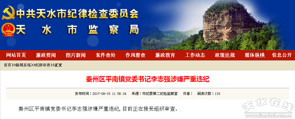 秦州區(qū)平南鎮(zhèn)黨委書記李志強(qiáng)涉嫌嚴(yán)重違紀(jì)接受組織審查