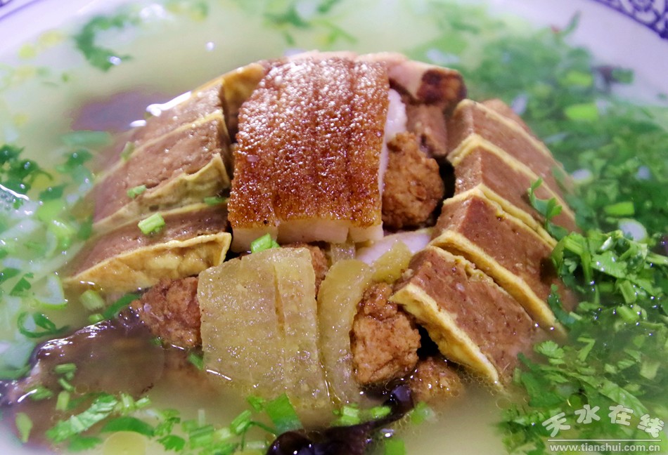 品種豐富,入味又不油膩還耐儲放的天水扣菜,正和里脊、清燉、帶把肘子、四喜丸子、八寶雞等口味濃郁、厚重的傳統(tǒng)名菜,共同構(gòu)筑著天水美食的底蘊(yùn)。古老的民俗和傳承的美食,在新時代,依然被一茬茬的舌尖收割著。