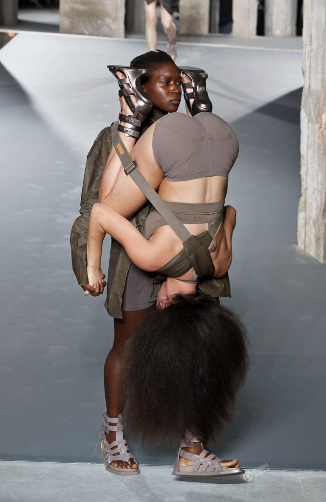 巴黎時裝周奇葩走秀似雜技 模特倒掛同伴脖子(圖)