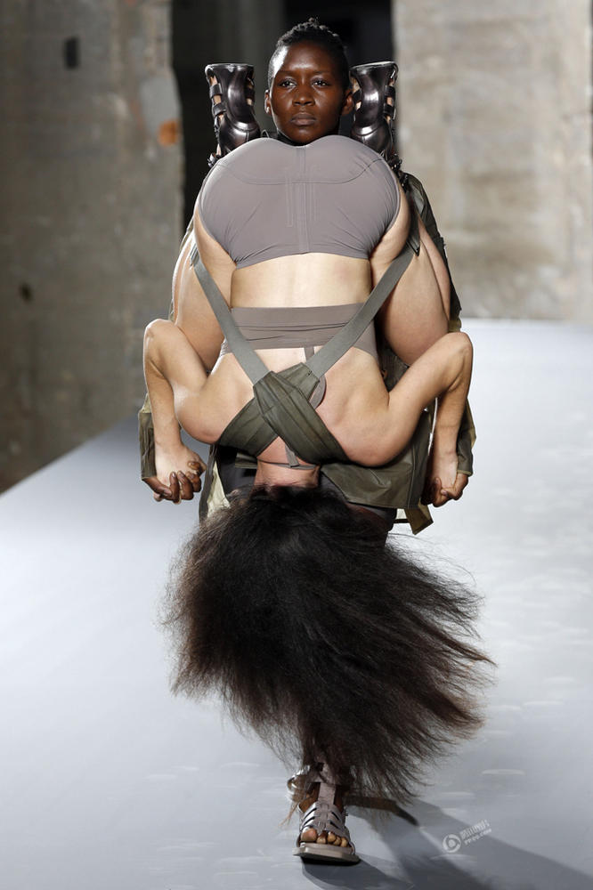 巴黎時裝周奇葩走秀似雜技 模特倒掛同伴脖子(圖)