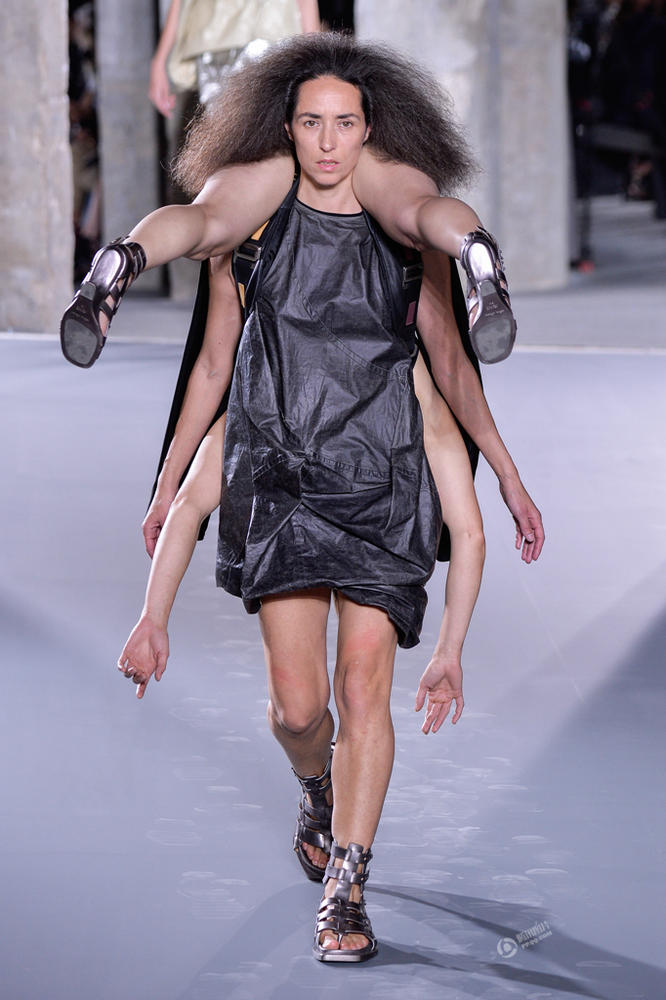 巴黎時(shí)裝周奇葩走秀似雜技 模特倒掛同伴脖子(圖)