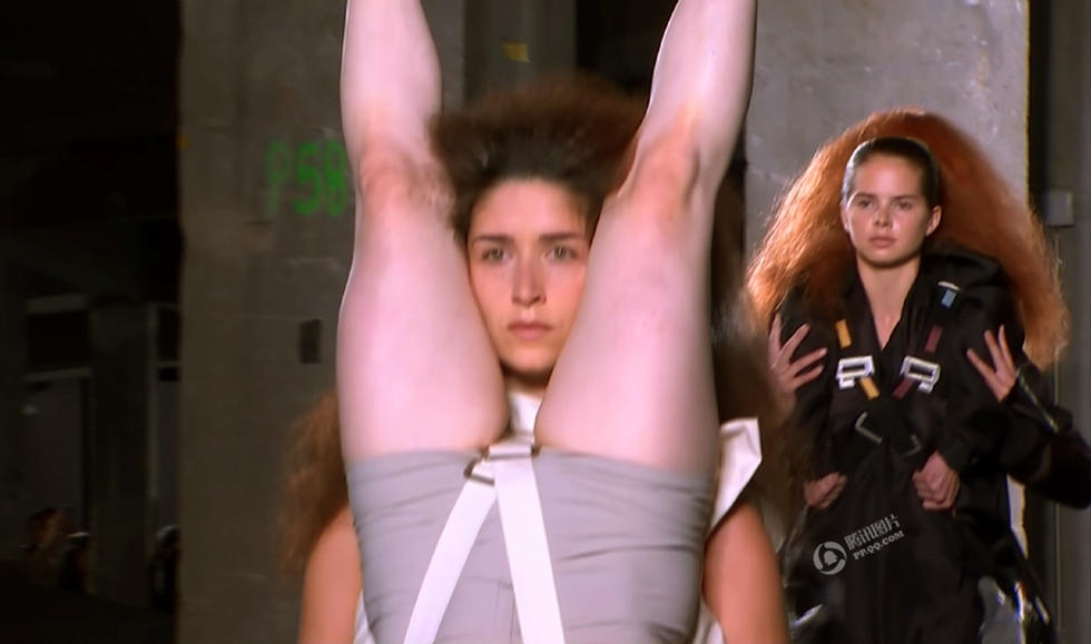 巴黎時裝周奇葩走秀似雜技 模特倒掛同伴脖子(圖)