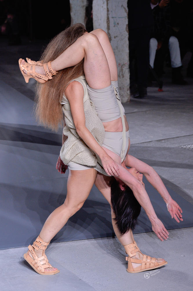 巴黎時(shí)裝周奇葩走秀似雜技 模特倒掛同伴脖子(圖)