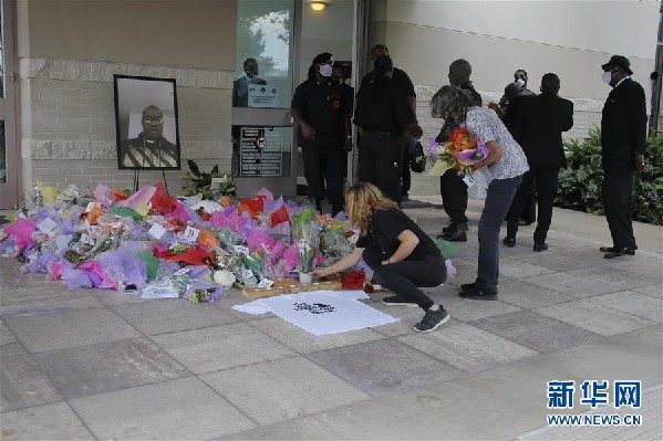 6月9日,在美國(guó)得克薩斯州休斯敦,人們?cè)谂e行弗洛伊德葬禮的教堂外獻(xiàn)花。因警察暴力執(zhí)法而死亡的非裔美國(guó)人弗洛伊德的葬禮9日在其“家鄉(xiāng)”——休斯敦市的一座教堂舉行。葬禮結(jié)束后,弗洛伊德的遺體被運(yùn)往休斯敦一處墓地安葬。新華社發(fā)(勞承躍攝)