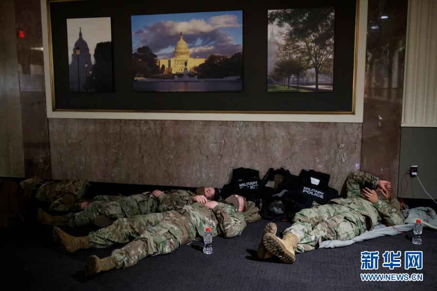 1月14日,美國國民警衛(wèi)隊士兵在位于首都華盛頓特區(qū)的國會建筑內(nèi)休整。 |