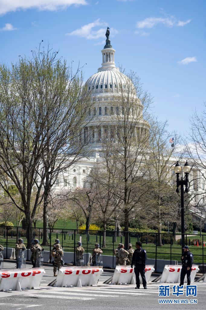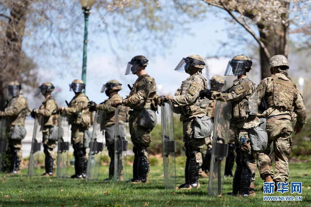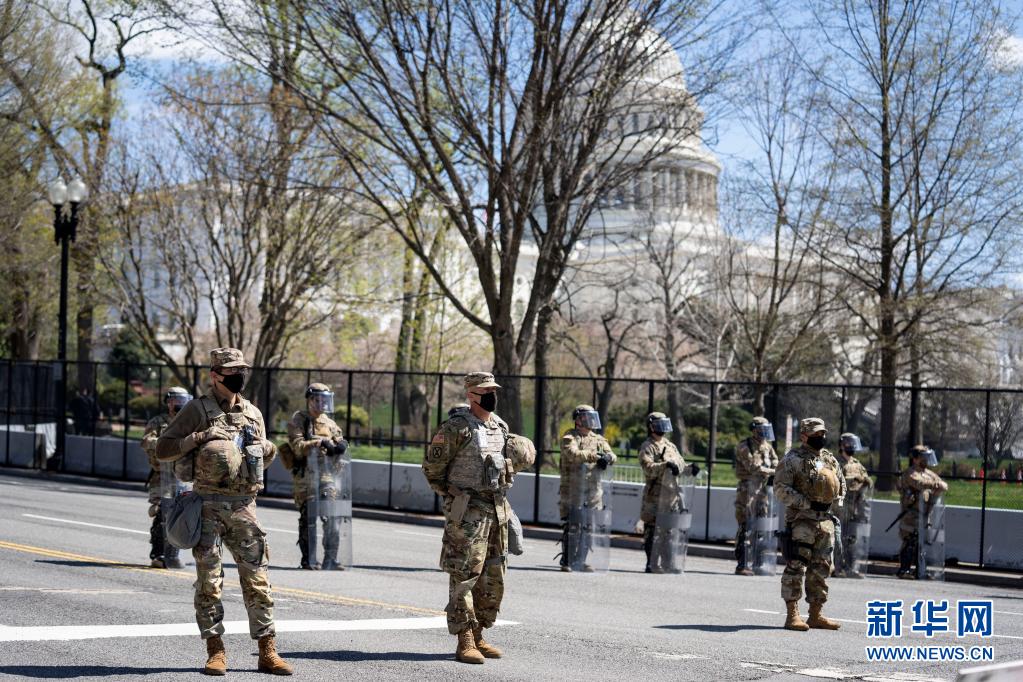 4月2日,美國國民警衛(wèi)隊隊員在華盛頓國會附近警戒。