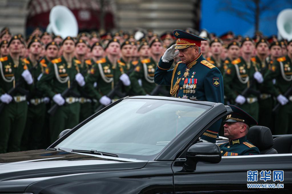 5月9日,在俄羅斯莫斯科舉行的勝利日閱兵式上,俄國防部長紹伊古檢閱部隊。新華社發(fā)(葉甫蓋尼·西尼岑攝)