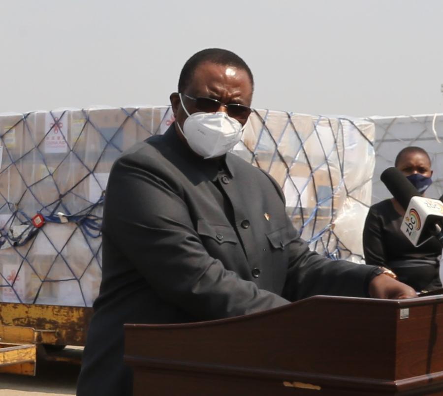 9月26日,津巴布韋副總統(tǒng)兼衛(wèi)生部長奇溫加在中國援助第四批新冠疫苗的接收儀式上致辭。新華社發(fā)