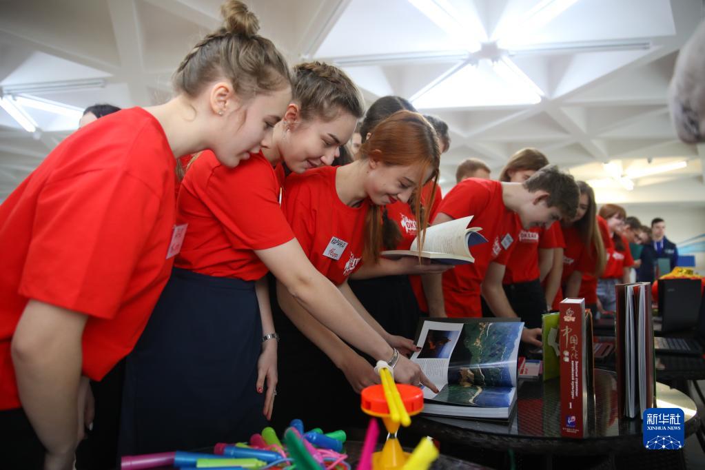 2019年1月16日,在俄羅斯符拉迪沃斯托克的“海洋”全俄兒童中心,俄羅斯青年觀看中國政府贈送的禮物。新華社記者 吳剛 攝