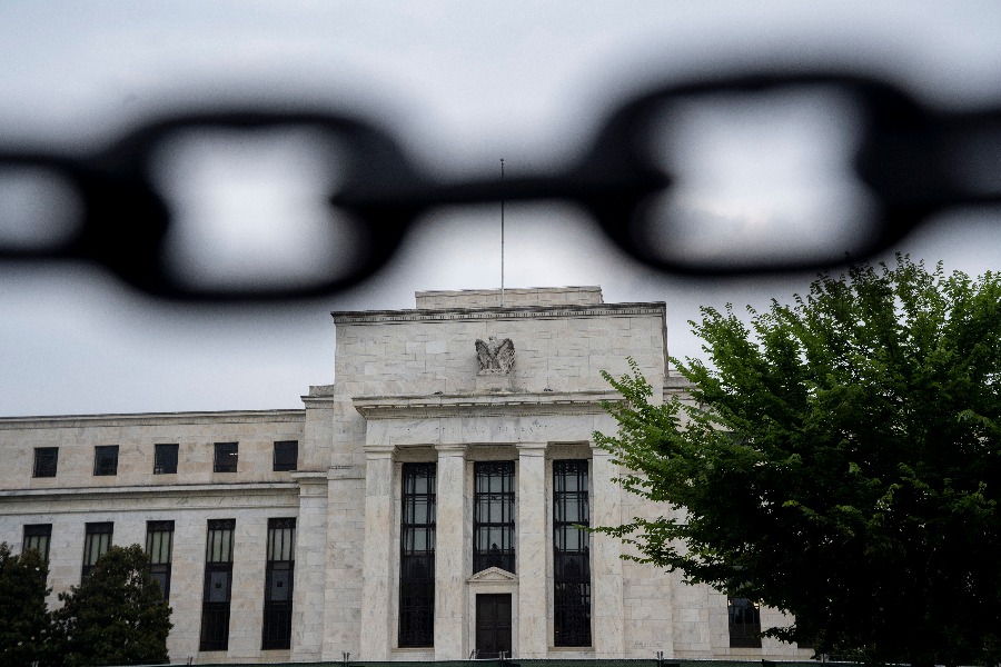 這是2022年6月22日在美國華盛頓拍攝的美聯(lián)儲大樓。新華社記者 劉杰 攝